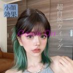 フルウィッグ かつら ふんわり前髪 ぱっつん前髪 グリーン インナーカラー 前髪あり 自然 可愛い キュート 原宿風 ウイッグ wig