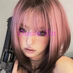 ピンクウイッグ フルウィッグ ショートボブ ピンク系 襟足すっきり 自然 通気 ウェーブ 前髪 ミディアム かつら レディース 宿系 小顔効果