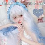 フルウィッグ グラデーション 長髪 原宿風 かつら 巻き毛 ストレート ゆめかわいい ゆめかわ ウィッグ 前髪あり ホワイト ブルー 水色 レディース