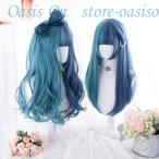 ウィッグ 原宿風 かつら 巻き毛 ぱっつん前髪 グラデーション レディース グリーン ブルー ウィッグ 可愛い ロング