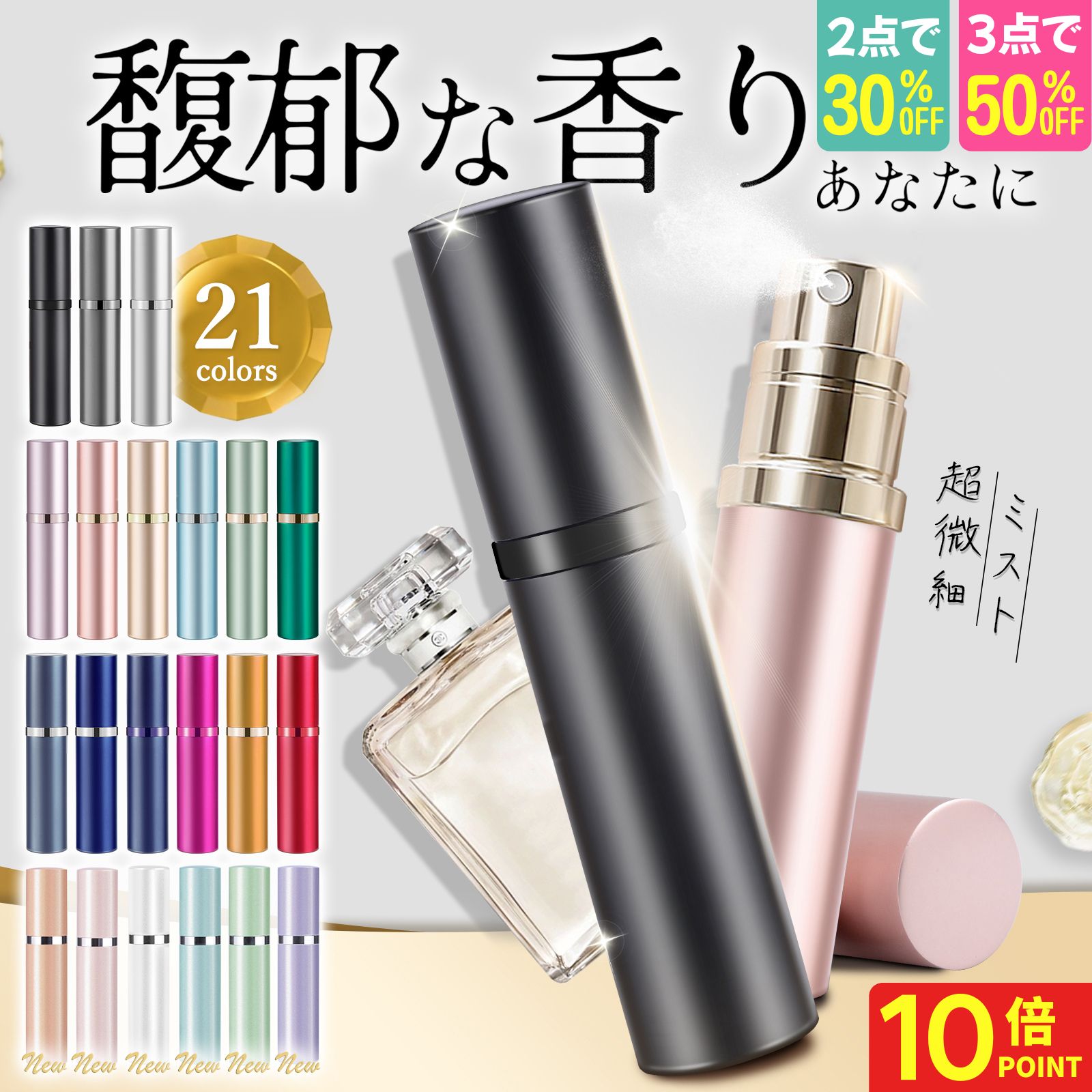 【P10倍・2点で30%OFF★3点で全品半額!】 anan掲載 アトマイザー 21色 MOELIFE 当店限定真珠光沢 マット 香水 詰め替え ボトル 5ml ワンタッチ補充 漏れない 持ち運び 便利 アトマイザー レディース メンズ おしゃれ かわいい 高級感 底部充填 ミニ コンパクト 軽量 携帯