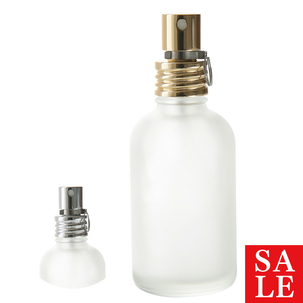 【10%OFFセール】アトマイザー・フロストガラスボトル・スプレー [50ml]/10本 香水瓶 フレグランス 香水 リネンウォーター ボトル パフューム 透明 詰め替え 容器 アトマイザー 手作り アロマ ゴールド シルバー 小分け 曇り 乳白 不透明 ルームフレグランス 化粧品 コスメ