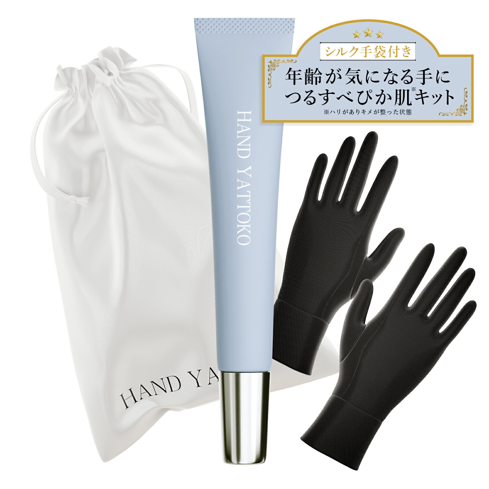 【手元用美容液】ハンドヤットコ ハンドクリーム シルク手袋付 (ナイアシンアミド ビタミンC誘導体 セラミド 合成香料フリー ラメ入り) エイジングケア 手荒れ 爪 手 保湿 ハンド美容液 ハンドセラム 美容液 ハンドケア ギフト プレゼント 20g HY003