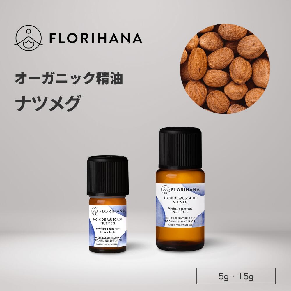 フロリハナ ナツメグ 精油 オーガニック 5g 15g | Nutmeg アロマ アロマオイル エッセンシャルオイル 香り 天然精油 無農薬 無添加