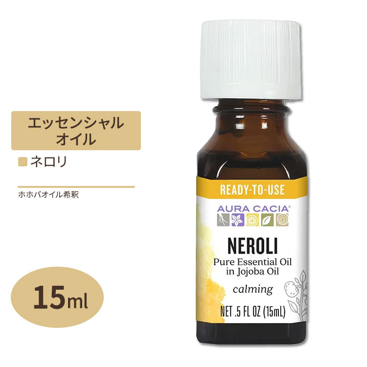 オーラカシア エッセンシャルオイル ネロリ ホホバオイル希釈 15ml 0.5floz Aura Cacia Essential Oil Neroli Jojoba 精油【お取り寄せ商品】【合わせて買いたい】