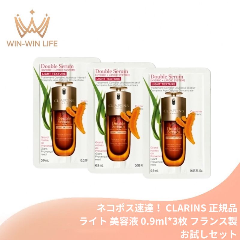 ネコポス速達!クラランス ダブル セーラム ライト ADC〈美容液〉0.9ml*3枚 合計2.7ml フランス製 お試しセット サシェサンプル トラベルサイズ 美肌 ダンチクエキス配合 27の有用成分配合 軽やかなテクスチャー すばやく浸透 うるおい ハリ キメ改善 CLARINS clarins