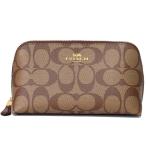 コーチ コスメポーチ COACH コーティングキャンパス レザー シグネチャー コスメティック 化粧ポーチ カーキ×サドル 53385