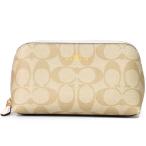 コーチ コスメポーチ COACH コーティングキャンパス レザー シグネチャー コスメティック 化粧ポーチ ライトカーキ×チャーク 53385