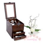木製 メイクボックス コスメボックス 大容量 化粧箱 鏡付き 鏡台 持ち運び コンパクト 引き出し 化粧品 メイク道具 収納 お花 かわいい おしゃれ