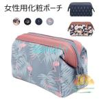 化粧ポーチ メイクアップ ポーチ がま口 ファスナー 収納 整理 ミニバッグ 小物入れ 旅行 トラベル用品 コスメポーチ プリント 花柄 フラミンゴ