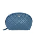 【中古】シャネル マトラッセ コスメポーチ ラムスキン レザー ブルー系 化粧ポーチ クラッチ ココマーク CC バッグ レディース 6106166mm-W