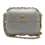 シャネル airpods ケース エアポッズ ケース マトラッセ チェーン チャーム ラムスキン ココマーク グレー ゴールド AP2207 CHANEL
