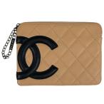 シャネル CHANEL ココマーク ポーチ カンボンライン フラット 小物入れ 化粧ポーチ レザー ベージュ レディース 中古