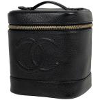 シャネル CHANEL ココマーク バニティバッグ コスメ メイク 小物入れ 化粧ポーチ キャビアスキン ブラック A01998 レディース 中古