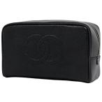 シャネル CHANEL ココマーク ポーチ 化粧ポーチ キャビアスキン ブラック レディース 中古