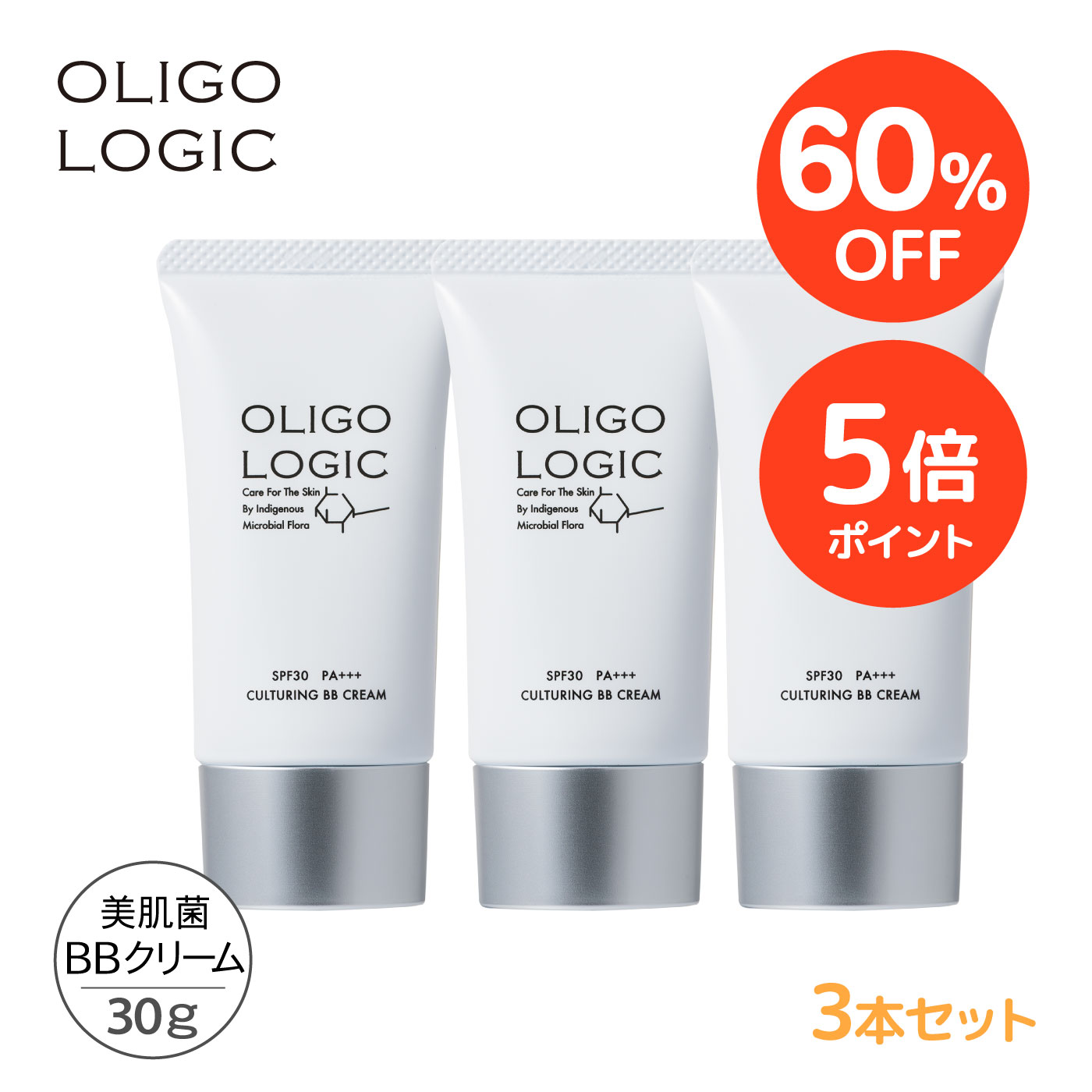 【SALE期間 60%OFF+P5倍】【3本セット/公式】 オリゴロジックカルチャリングBBクリーム 30g [美容液ファンデーション]エイジングケア 美肌菌 ハリ ツヤ くすみ シミしわ改善 敏感肌 低刺激 無添加 アレルギーテスト済 アルコールフリ