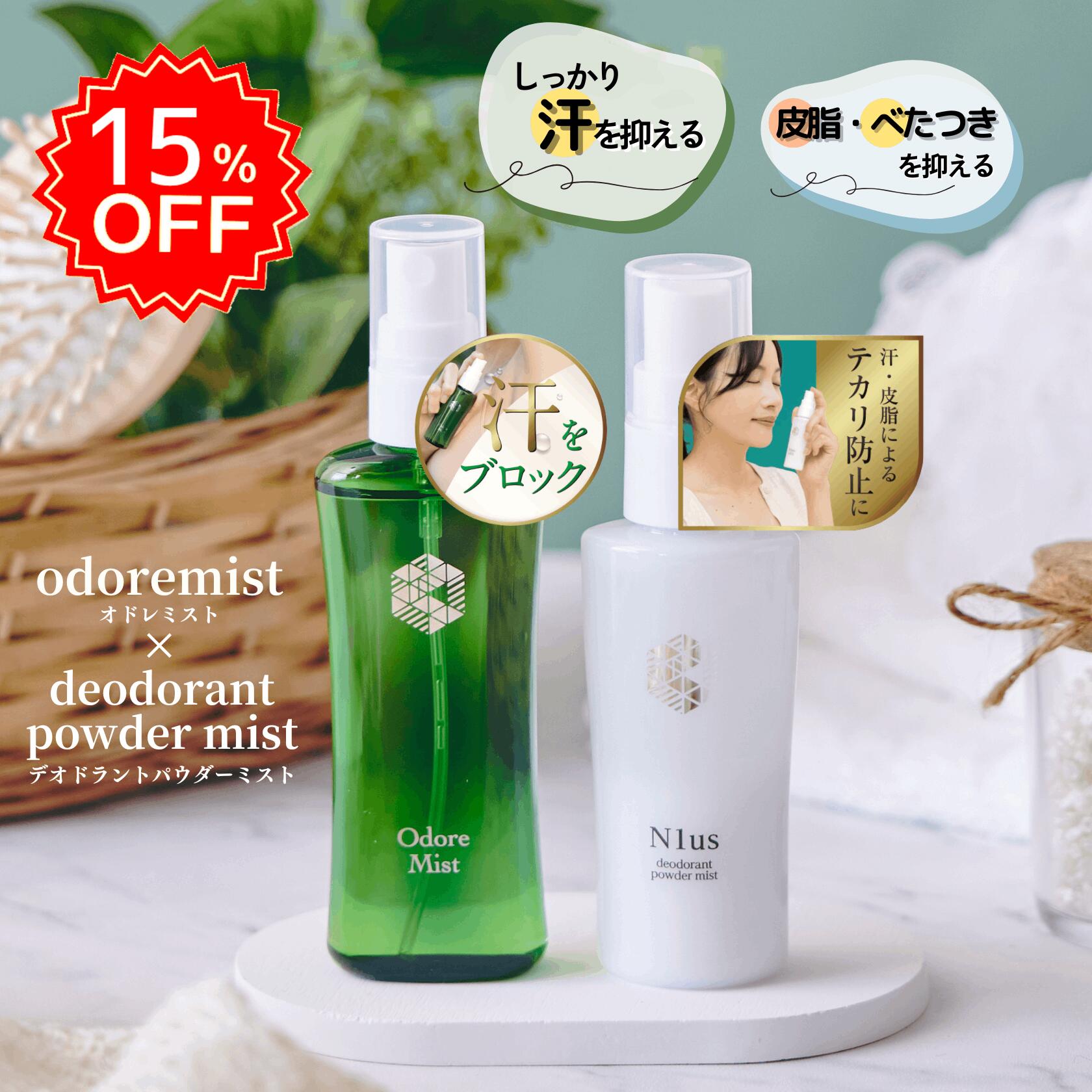 15%OFF!顔用デオドラント&脇汗対策セット!制汗剤 【オドレミスト50ml&N1us デオドラントパウダーミスト50ml セット ODPD】 新発売 塩化アルミニウム 化粧崩れ 皮脂予防 メイクキープ メンズ レディース 薬局プロデュース医薬部外品