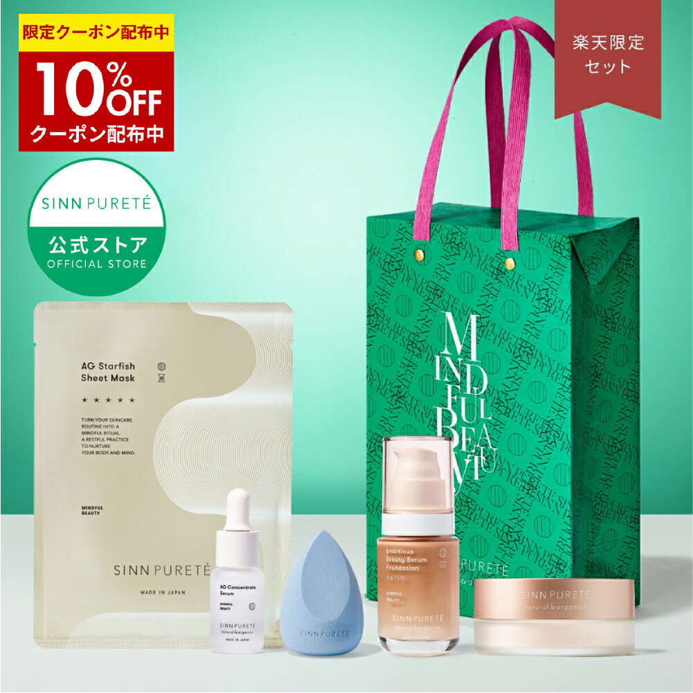 ★楽天限定15%OFF★【HOLIDAY COLLECTION´25】美肌錯覚ベースメイクセット | クリスマス コフレ シンピュルテ SINN PURETE ギフト オーガニック ファンデ パウダー パフ シートマスク セラム 美容液 プレゼント ヒトデ 艶 ツヤ 高浸透 高保湿 トライアル 40代 30代 20代