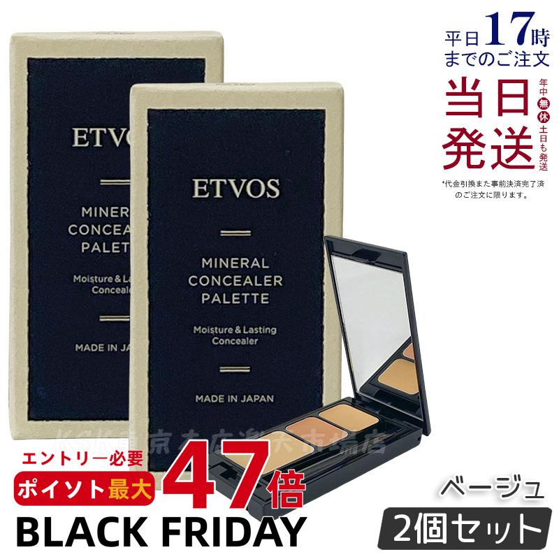 【2個セット】エトヴォス ETVOS ミネラルコンシーラーパレット 3.1g ベージュ 下地 コンシーラー ベース メイク パレット 3色セット SPF36 PA+++ シミ クマ ニキビ跡 カバー 石けんオフ ブラシ付 鏡付 低刺激 敏感肌 UV 石けんオフ 国内正規品 送料無料