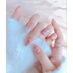 ネイルチップ ネイルシール 3D水光ネイルベージュマグネット3Dリボンアートバレリーナネイルチップ マグネットネイル