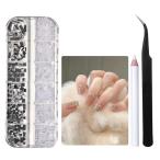 ESJNNKラインストーンネイルラインストーン3点セットネイルデコレーション3D混入ネイルアートパーツクリスタルセルフネイルレジンネイルセットハンドメイド素材DIY手芸パーツ(シルバーA)