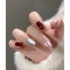 ネイルチップ ネイルシール ネイルチップ きらきら ワインレッド ゴールドつけ爪 ネイルアート