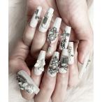ネイルチップ ネイルシール 3D水光ネイルストーンシルバーブルーマグネットバレリーナネイルチップ