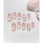 ネイルチップ ネイルシール 水光ネイルピンクマグネットガラスフレンチシェルストーンオーバルネイルチップ