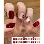 ネイルチップ ネイルシール ネイルチップ ショート きらきら ワインレッド ゴールドつけ爪 ネイルアート