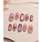 ネイルチップ ネイルシール 水光ネイルシアーピンクチークマグネットハートリボンオーバルネイルチップ 冬ネイル(14)