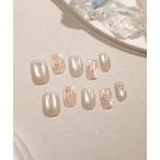 ネイルチップ ネイルシール 3D水光ネイルピンクベージュマグネットラメグラデーションストーンショートスクエアネイルチップ