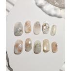 ネイルチップ ネイルシール 水光ネイルベージュニュアンスフラワーゴールドミラーストーンホログラムオーバルネイルチップ