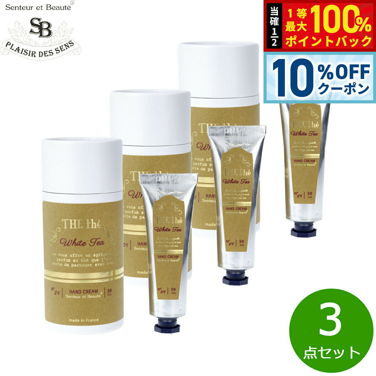 【5/1限定!10%OFFクーポン&抽選で1万ポイントバック】Senteur et Beaute サンタール エ ボーテ ザ ティー ハンドクリーム ホワイトティー 30ml×3点【送料無料】