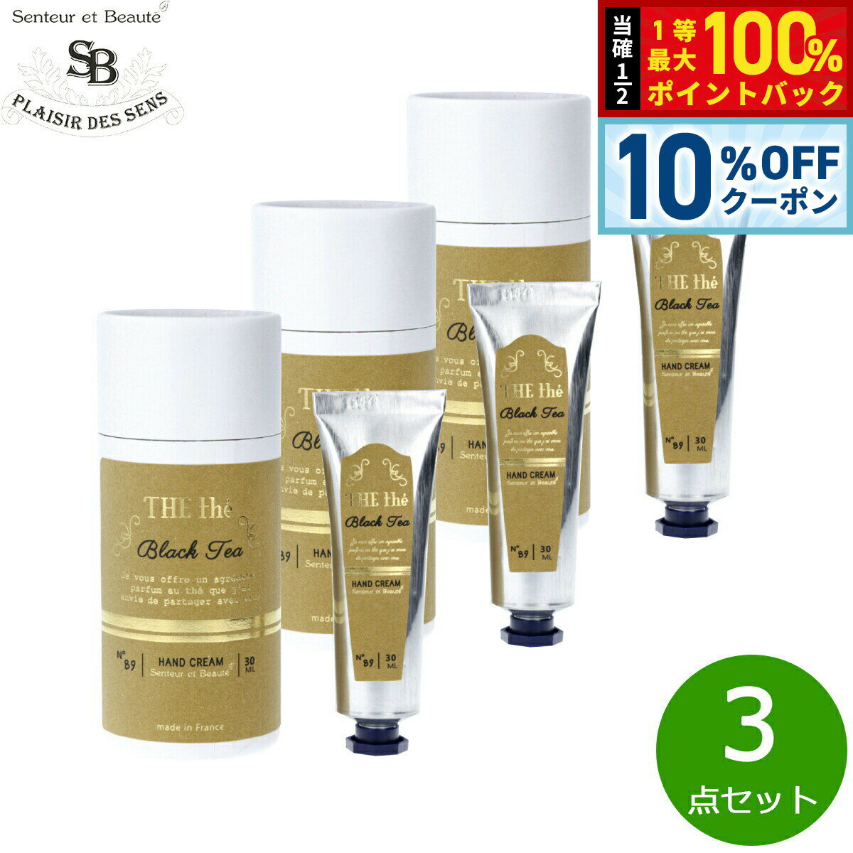 【5/1限定!10%OFFクーポン&抽選で1万ポイントバック】Senteur et Beaute サンタール エ ボーテ ザ ティー ハンドクリーム ブラックティー 30ml×3点【送料無料】