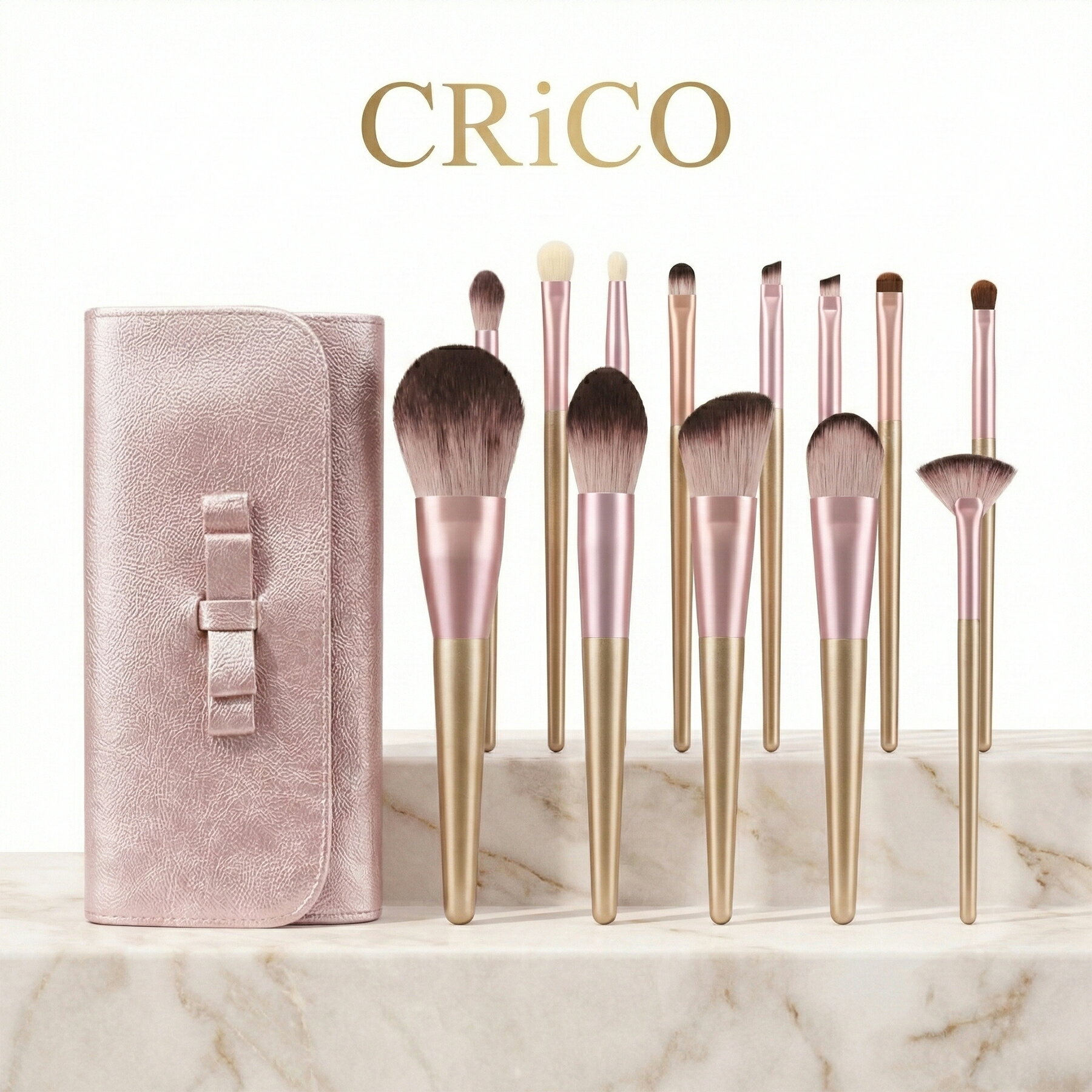 \リベンジ・クーポン【40%OFF】/ リュクス・ローズゴールド メイクブラシセット 13本セット 収納ポーチ付き 宝石のような輝きを放つメイクブラシ パウダーブラシ ファンデーションブラシ アイシャドウブラシ 携帯用 化粧筆 韓国コスメ CRiCO by 黒鳥商店
