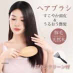 ヘアブラシ 猪毛 メンズ レディース ヘアケア ブラシクリーン付 パドルブラシ 頭皮マッサージ ヘアーブラシ くし 豚毛 持ち運び 静電気防止 天然木