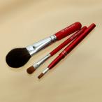 熊野化粧筆 メイクブラシ 3本セット <レッドパール> [ショート軸タイプ] 熊野筆 包装 無料・ 名入れ 可 チークブラシ リップブラシ シャドウブラシ 化粧筆 内祝い ギフト セット 名入れ プレゼント 送料無料