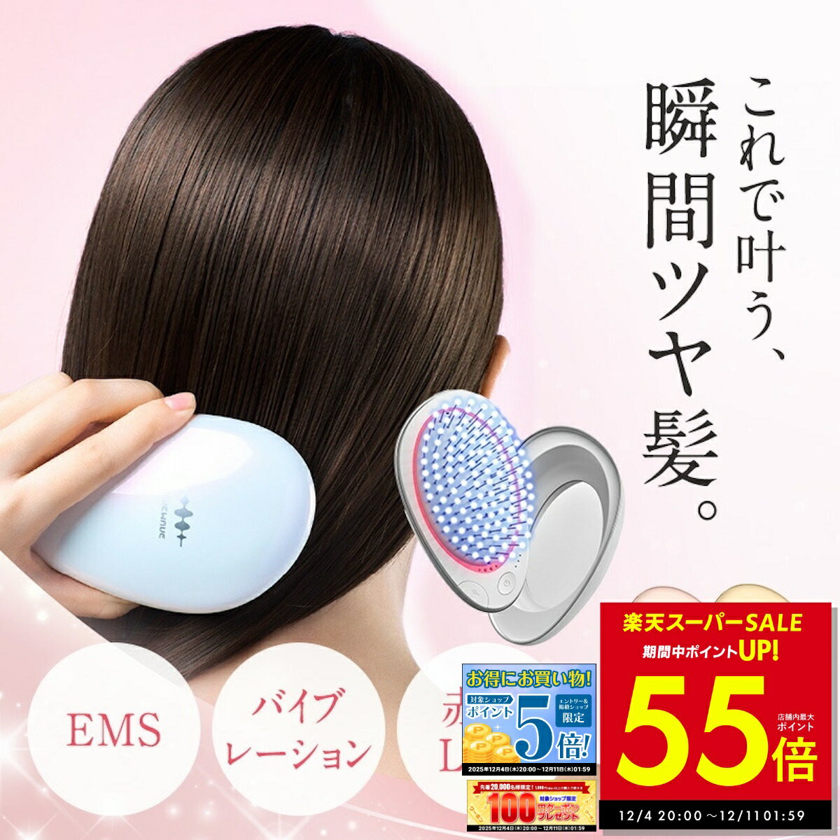 ポイント2倍+10%OFF EMS ヘアブラシ ミニサイズ 持ち運び 携帯 コンパクト くし ブラシ クシ 髪 サラサラ 電気ブラシ バイブレーション 赤色LED マイナスイオン ケア 頭皮 髪の毛 リフトケア 友達 彼女 妻 女性 母 誕プレ 誕生日 クリスマス プレゼント ギフト 20代 30代