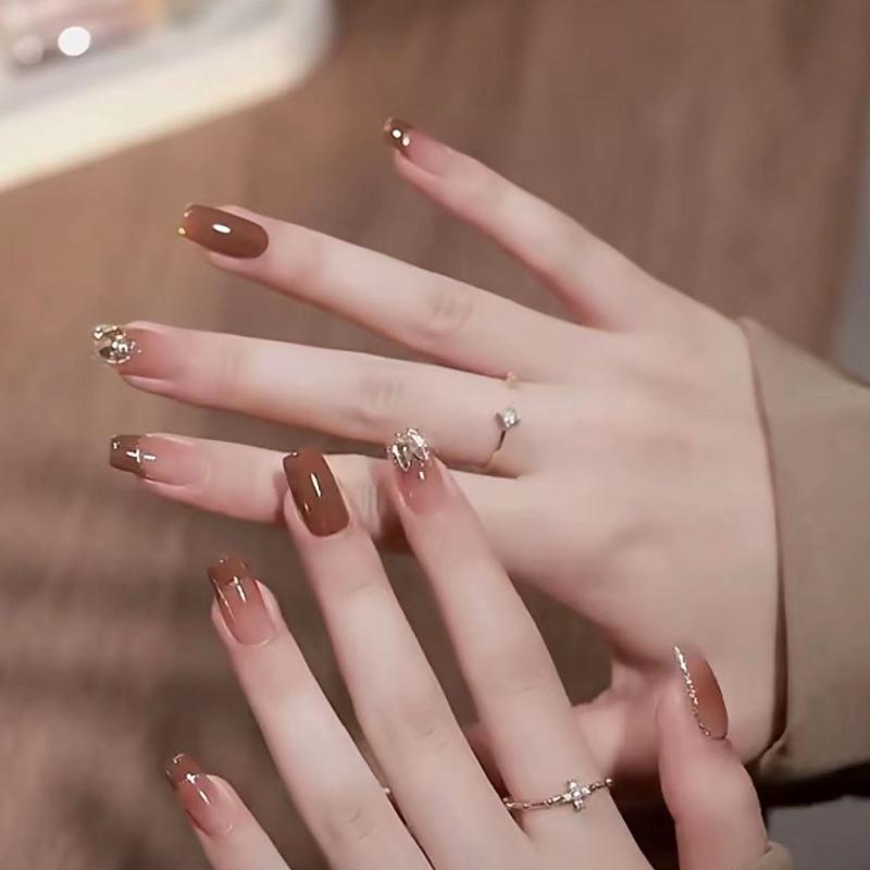 ネイルステッカー 女性用 焦糖布丁 ロングタイプ シンプル ホワイトニング グラデーション 着脱可能 甲片 法式 シンプル 純欲 中長 装着式 貝殻 星 かわいい 指先ケア 日常使い カラフル