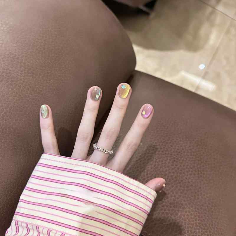 夏用 ネイルチップ 彩虹 人魚 ビーズ ドーパミン 猫目 ショートネイル ホワイトニング ハンドメイド ウェアリング ネイル ステッカー 完成品 指甲 貼り付け キット 女性用 ユニセックス 短方型 短楕円型 猫眼 甘め セクシー 蛍光 超薄 無痕 爆闪