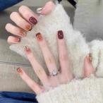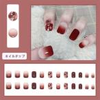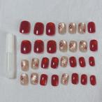 ショッピングゴー shoppinggo ネイルチップ ショート きらきら ワインレッド ゴールドつけ爪 ネイルアート アートチップ デコチップ オーバ