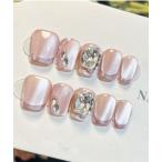 マニキュア ネイル 3D水光ネイルミルキーウェーブカーキマグネットミラーニュアンスショートスクエアネイルチップ