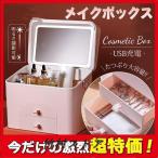メイクボックス 鏡付き メイクボックス持ち運び 大容量 コスメボックス化粧台 コスメ ギフト 軽量 持ち運びに便利な USB充電 LED付き 引出し コスメ