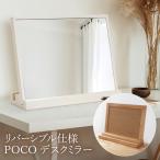 【POCOデスクミラー WH】卓上鏡 デスクミラー 飛散防止 送料無料 おしゃれ 木 幅40cm 奥行12cm 高さ41.5cm スタンドミラー