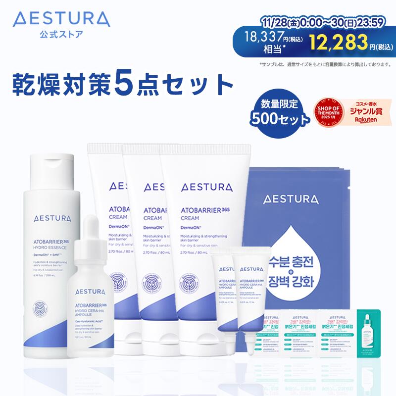 \28日~30日限定★20%OFF/乾燥対策5点セット サンプル8点付き アトバリア365 クリーム ハイドロエッセンス セラヒアルセラム スキンケアセット 化粧水 乳液 美容液 保湿クリーム フェイスクリーム 顔 セラミド 敏感肌 乾燥肌