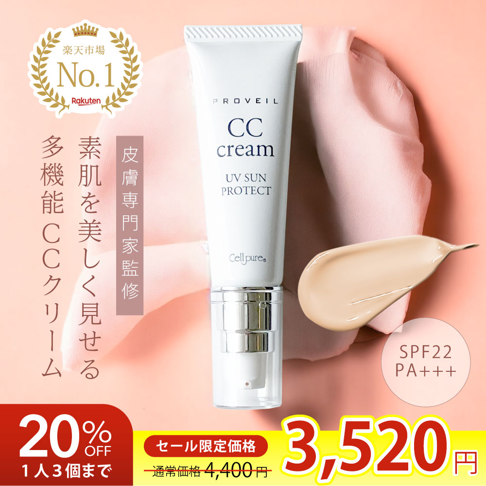 20%OFF\3本5%オフ/《楽天1位》【送料無料】セルピュア プロヴェール SPF25,PA++ / CCクリーム 下地 日焼け止め メイク下地 保湿 敏感肌 乾燥肌 美容 毛穴 美容成分 ドクターズコスメ cellpure 肌荒れ オールインワン 時短 簡単 皮膚科