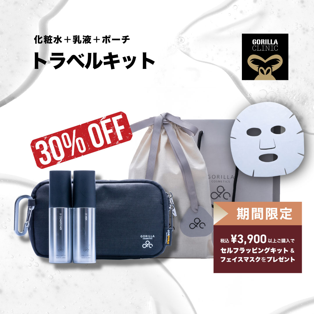 \\バレンタイン限定30%OFF//【公式】ゴリラコスメティクス トラベルキット ポーチ ボトル 2本 各50ml 男性 エイジングケア 化粧水 乳液 メンズ コスメ スキンケア プレゼント ギフト トラベルポーチ トラベルセット 旅行用 詰替可 楽天市場限定