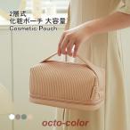 化粧ポーチ レディース トラベルポーチ ポケット PUレザー 二層設計 持ち手付き 仕分け 大容量 柔らかい 小物入れ 収納 シンプル