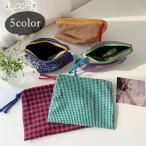 コスメポーチ 化粧ポーチ フラットポーチ 小物入れ 収納グッズ 整理用品 大きめ チャック ファスナー 軽量 総柄 チェック ハンドメイド風 カジュア