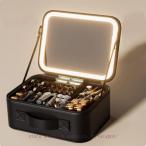 メイクボックス 鏡付き 3色LEDライト付き Luxspire コスメボックス メイクブラシバッグ EVA化粧ポーチ 大容量 コスメポーチ メイクポーチ 手提げ式 プロ用 小型 防塵 收納抜群 仕切り 調整可能 通勤 出張 旅行用 衝撃吸収 化粧品ケース
